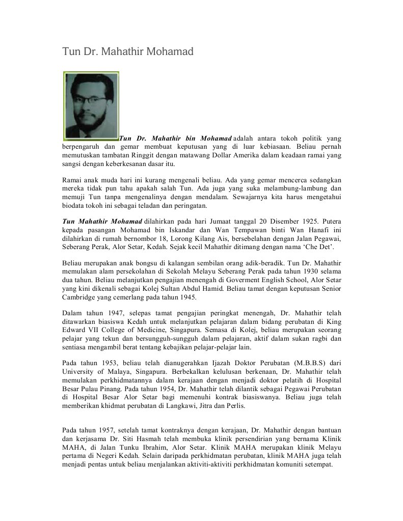 Biografi Tun Dr Mahathir Mohamad Laman 2 Dari 6 Semangat News