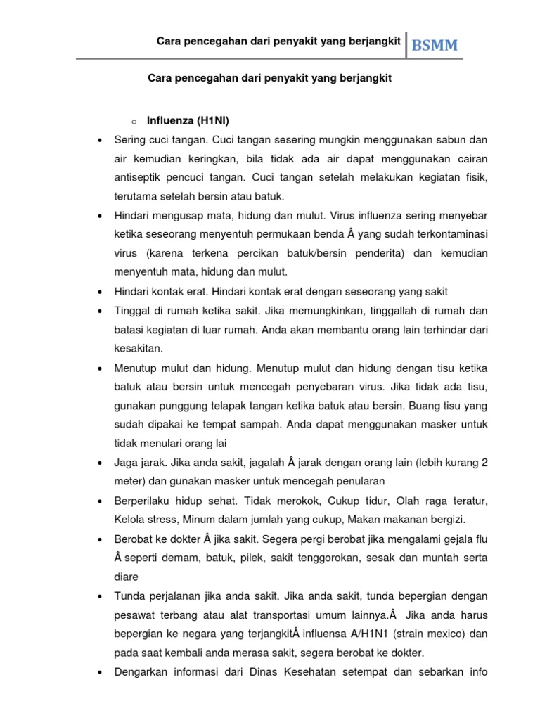 Cara Pencegahan Dari Penyakit Yang Berjangkit