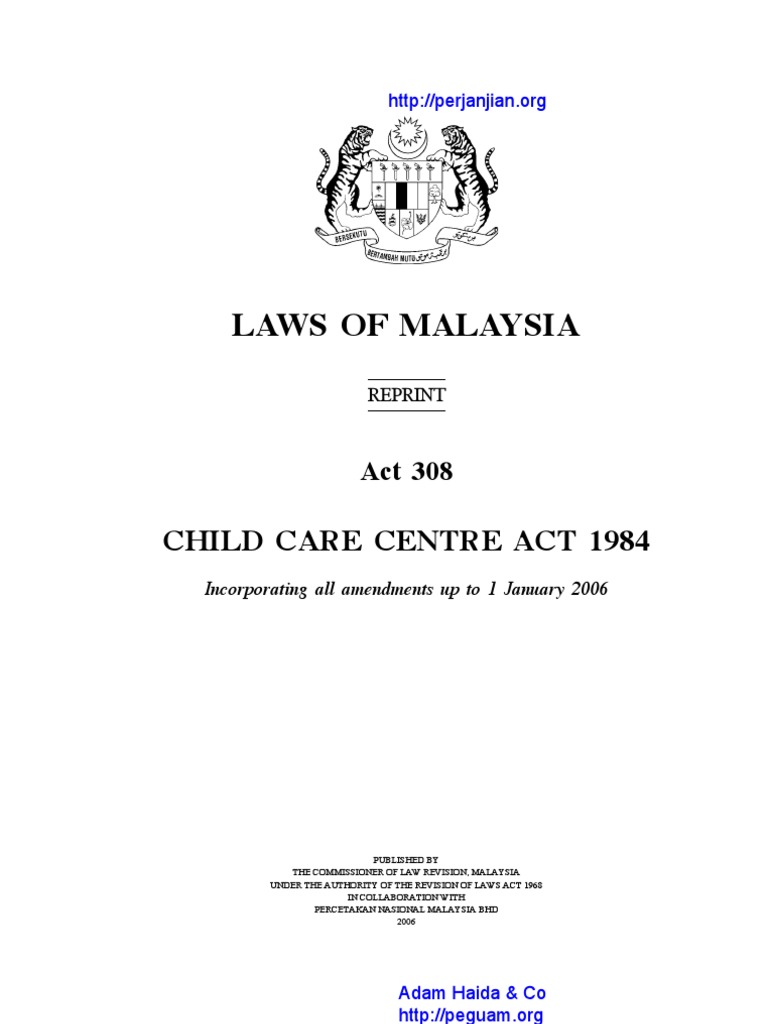 Child Care Centre Act 1984 Act 308 Public Law Government