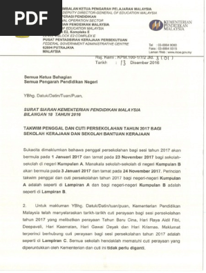Surat Siaran Kpm Takwim Penggal Cuti Sekolah 2017 Pdf
