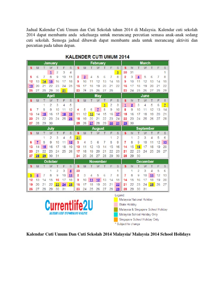 Jadual Kalendar Cuti Umum Dan Cuti Sekolah Tahun 2014 Di Malaysia