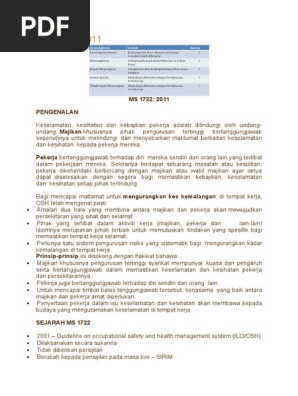 Ms 1722 Sistem Pengurusan Keselamatan Dan Kesihatan Pekerjaan