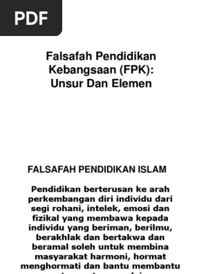 Falsafah Pendidikan Kebangsaan Fpk Unsur Dan Elemen