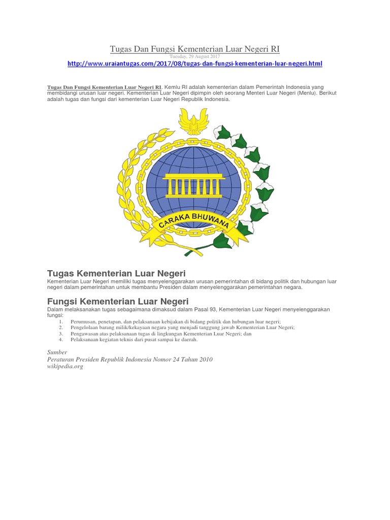 Uraiantugas Com Tugas Dan Fungsi Kementerian Luar Negeri Ri