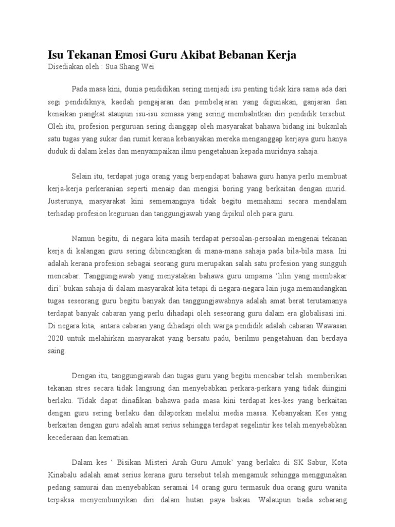 Isu Tekanan Emosi Guru Akibat Bebanan Kerja