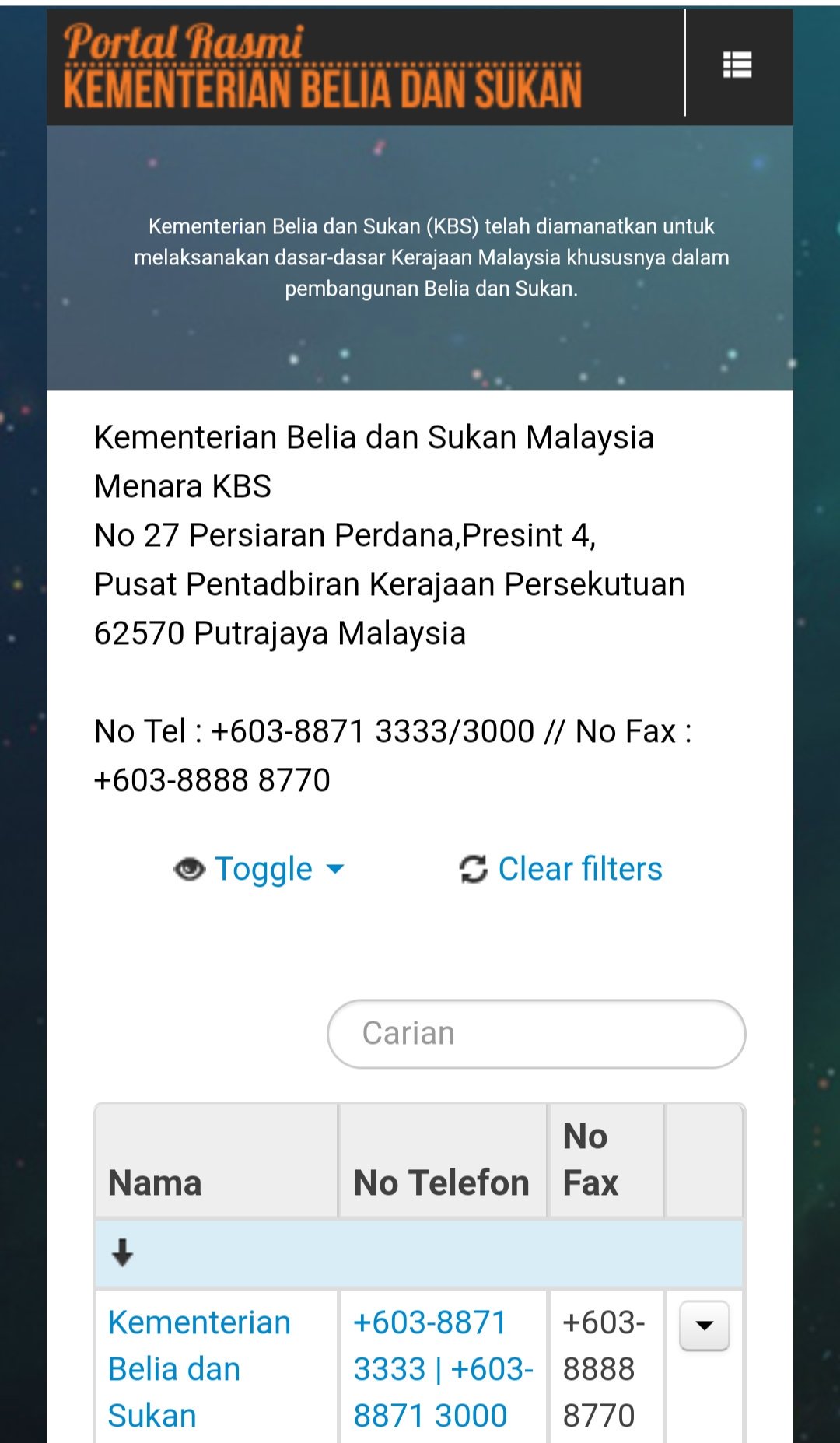 Jabatan Belia Dan Sukan Negara Direktori