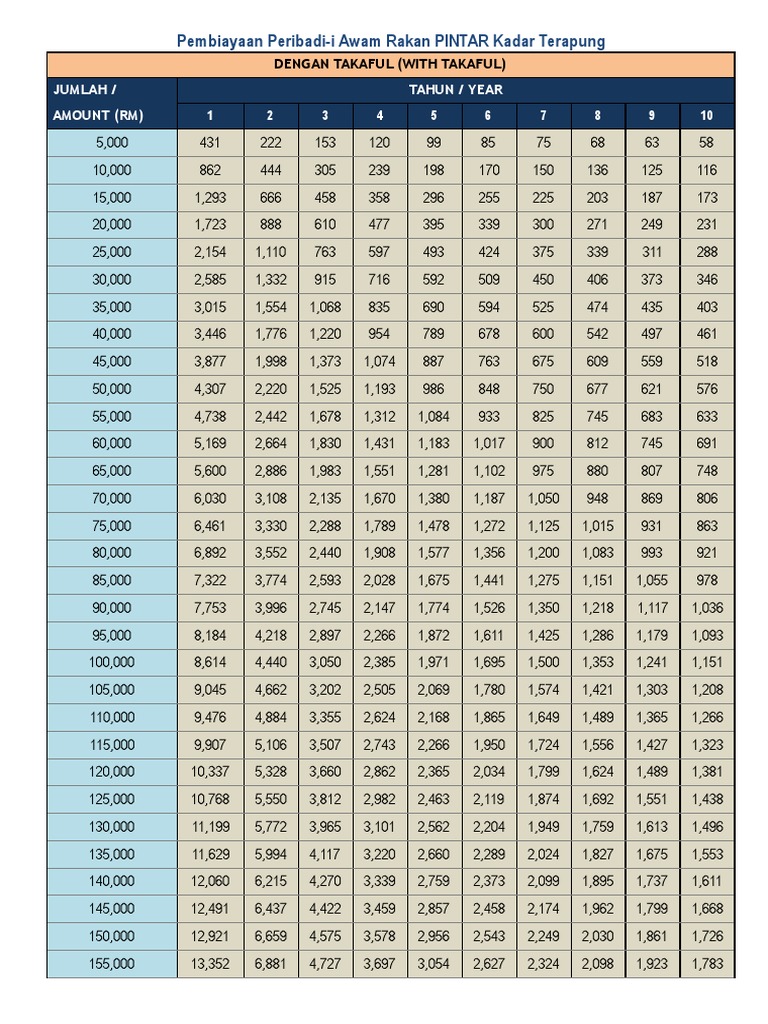 Jadual Pembayaran Pembiayaan Peribadi I Awam Rakan Pintar