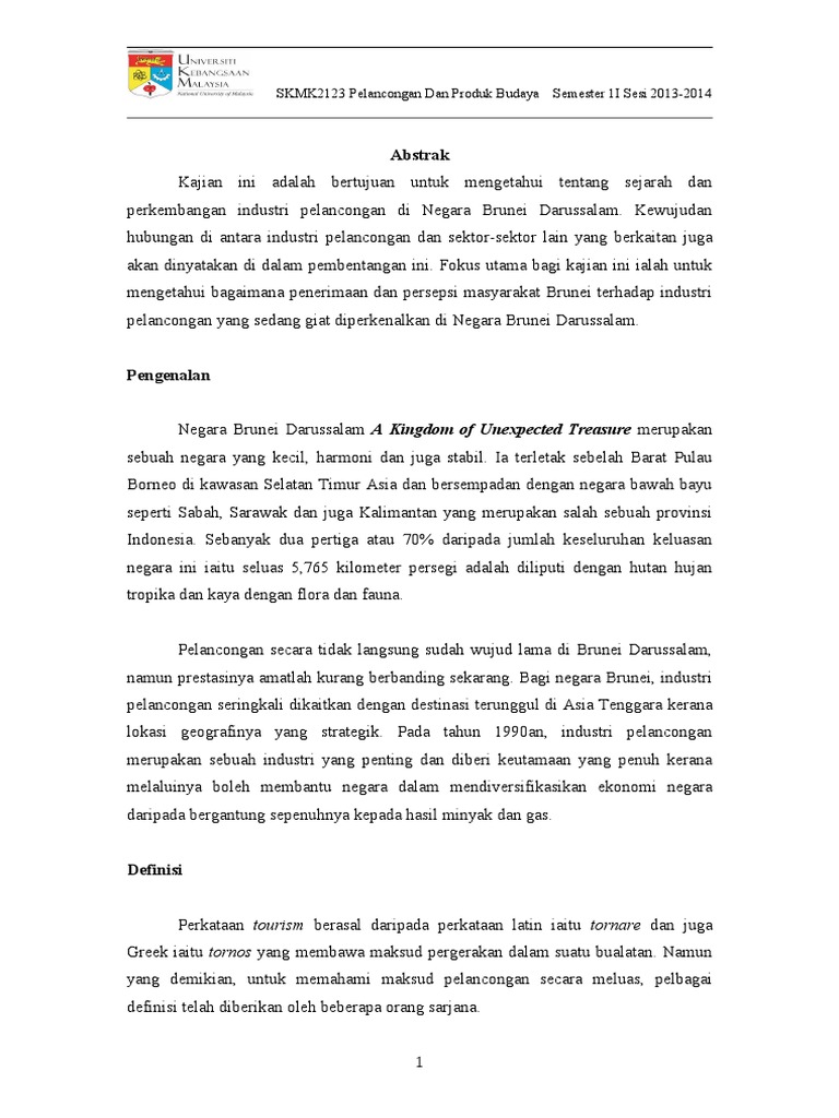 Abstrak Skmk2123 Pelancongan Dan Produk Budaya Semester 1i Sesi 2013 2014