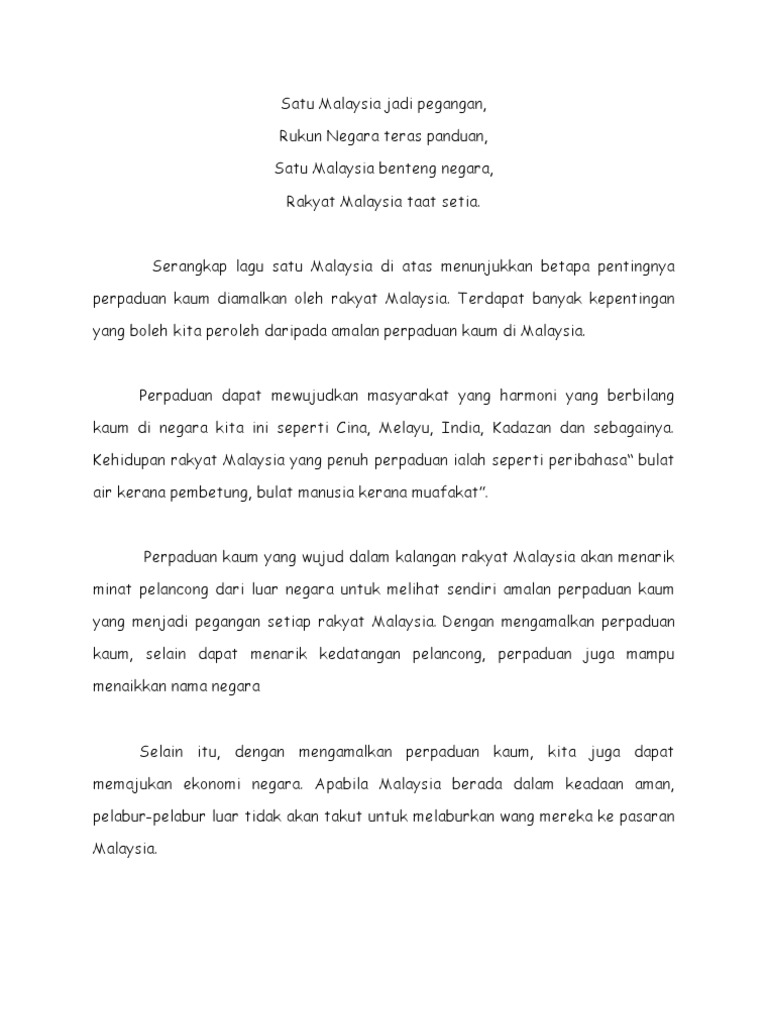 Contoh Karangan Kepentingan Perpaduan Kaum Di Malaysia Docx Contoh Karangan Kepentingan Perpaduan Kaum Di Malaysia 1 Malaysia Slogan Yang Telah Course Hero