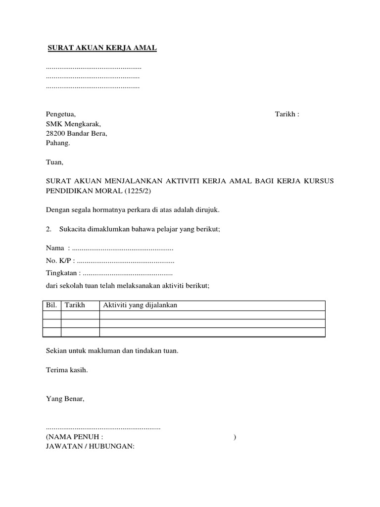 Surat Akuan Kerja Amal