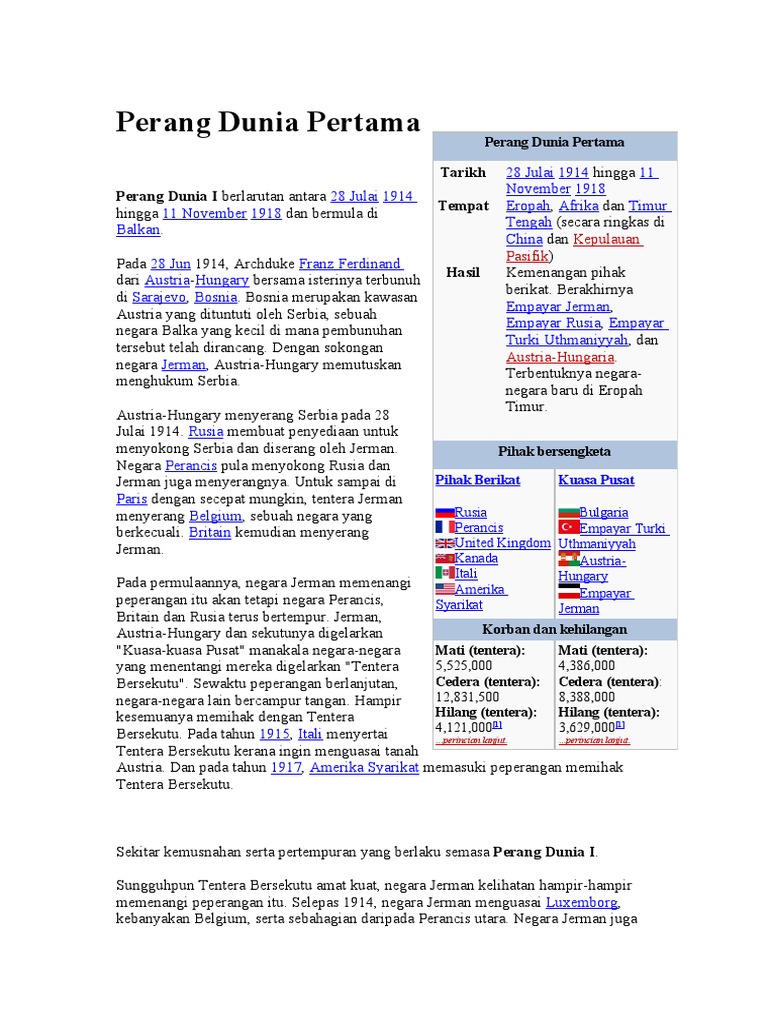 Pdf Kesan Perang Dunia Pertama Terhadap Eropah Chew Yee Herng Carlson Academia Edu