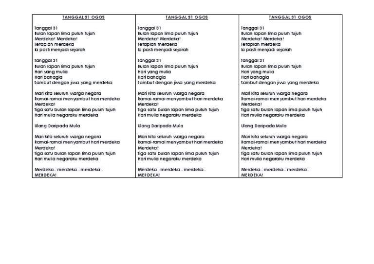 Lirik Lagu 31 Ogos 15pcs