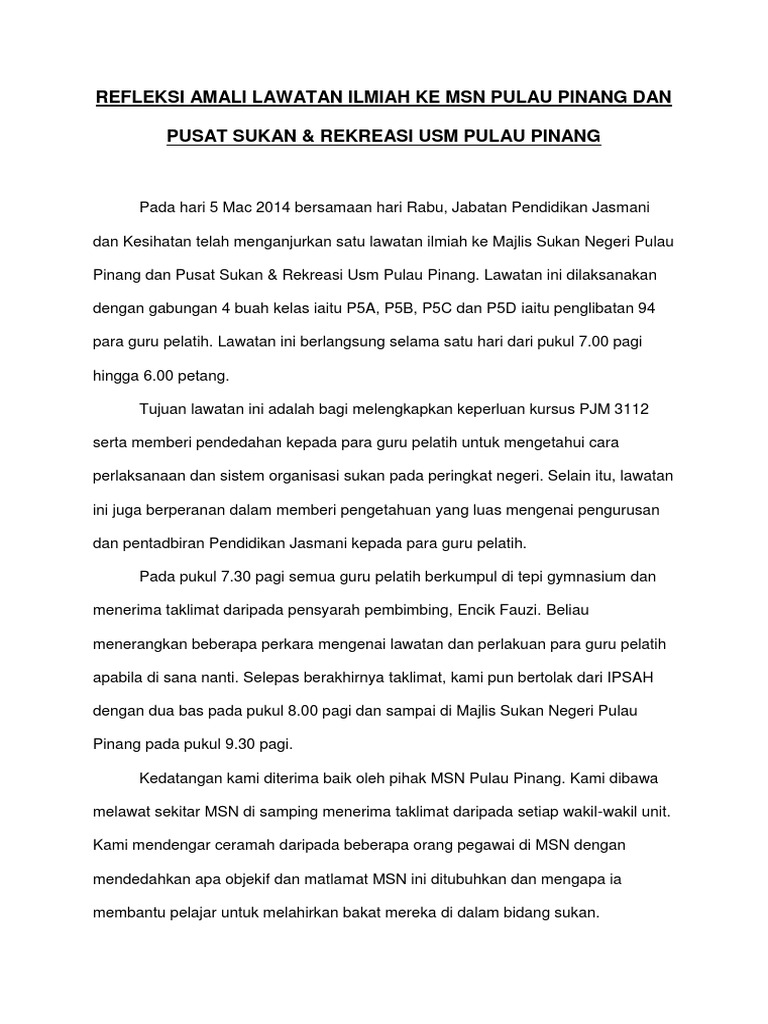 Refleksi Amali Lawatan Ilmiah Ke Msn Pulau Pinang Dan Pusat Sukan