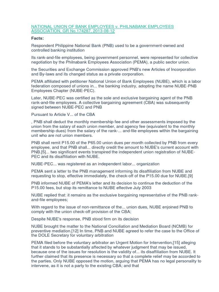 67 National Union Of Bank Employees V Philnabank Employees Digest Docx Trade Union Employment