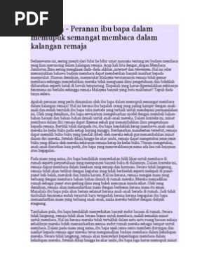 Sebuah Karangan Yang Panjangnya Lebih Ibu Bapa Mempunyai Peranan Penting Memupuk Minat Membaca Dalam Berikan Contoh Peristiwa Yang Berlaku