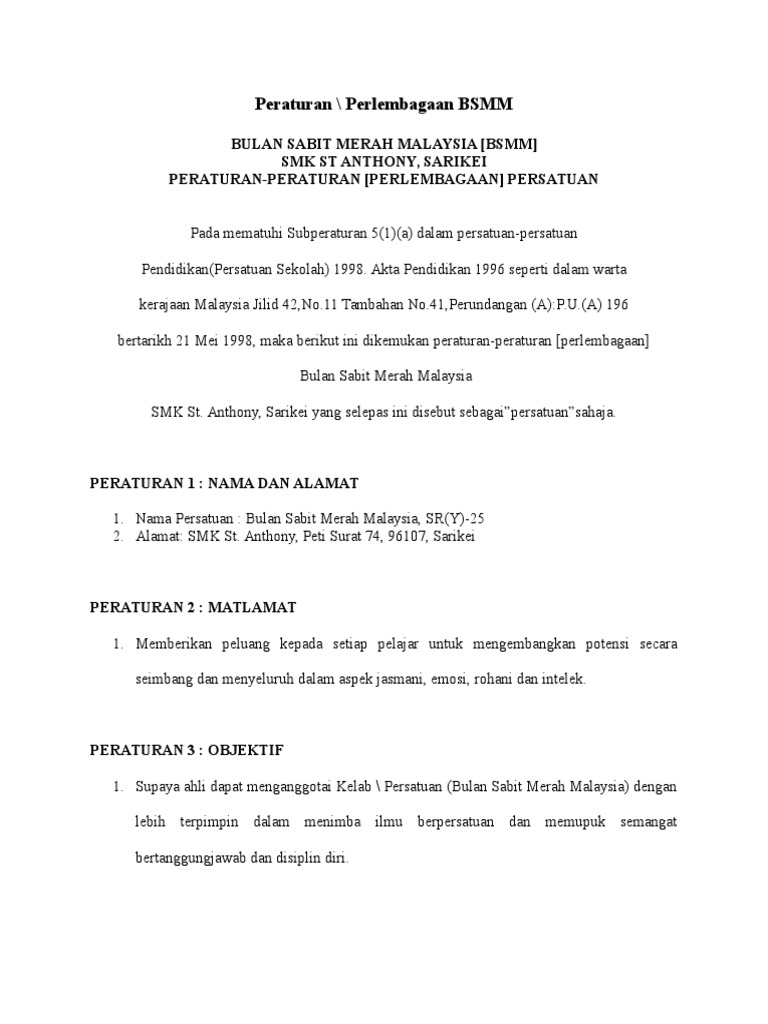 Kumpulan 3 Perlembagaan Pertubuhan Bsmm