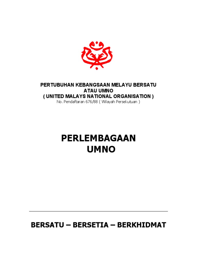 Perlembagaan Umno Umno Perlembagaan Umno Pertubuhan Kebangsaan Melayu Bersatu United Malays National Organisation No Pendaftaran 676 88 Wilayah Persekutuan Bersatu Bersetia