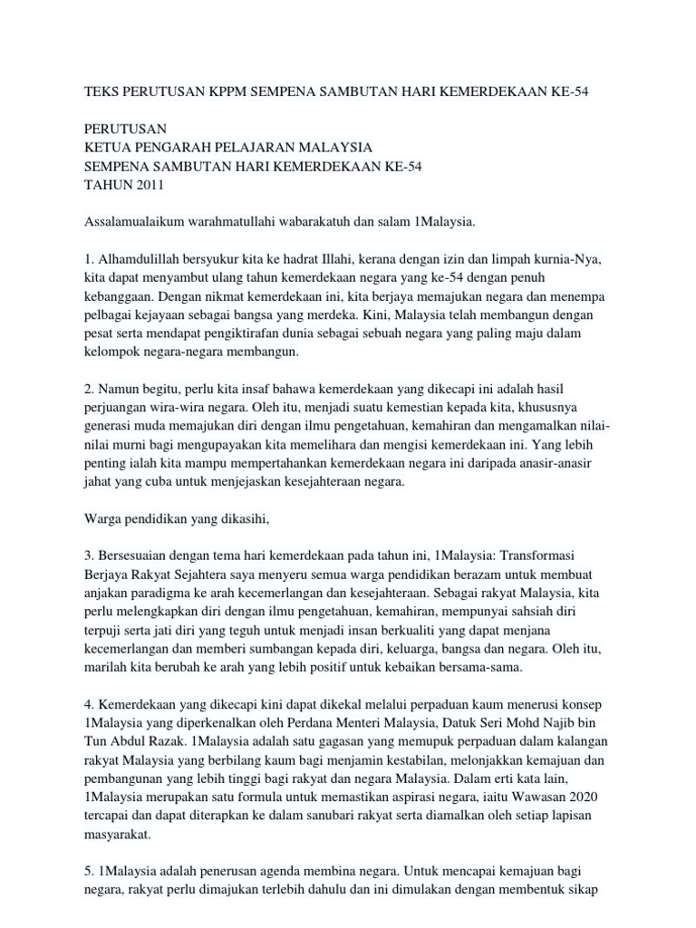 Teks Perutusan Kppm Sempena Sambutan Hari Kemerdekaan Ke