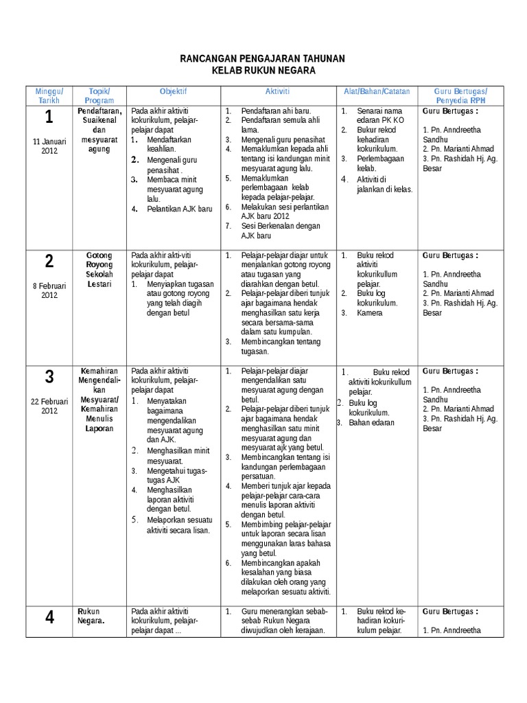 Doc Perancangan Tahunan Kelab Rukun Negara 2016 Robiah Bidin Academia Edu