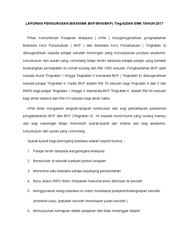Laporan Pengurusan Biasiswa 2017 Bkp