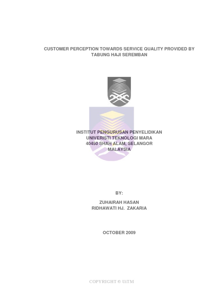 Lp Customer Perception Towards Service Quality Provided By Tabung Haji Seremban 09 24 Hajj Business