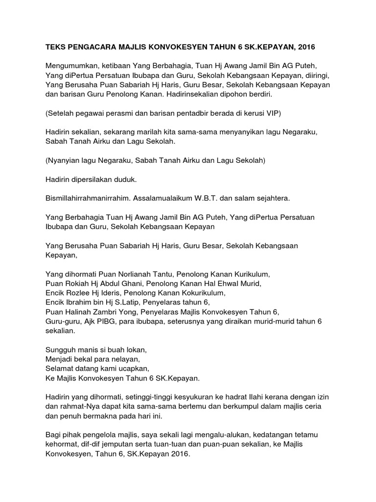 Teks Pengacara Majlis Konvokesyen Tahun 6 Sk