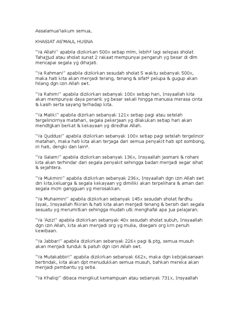 Khasiat Asma Ul Husna